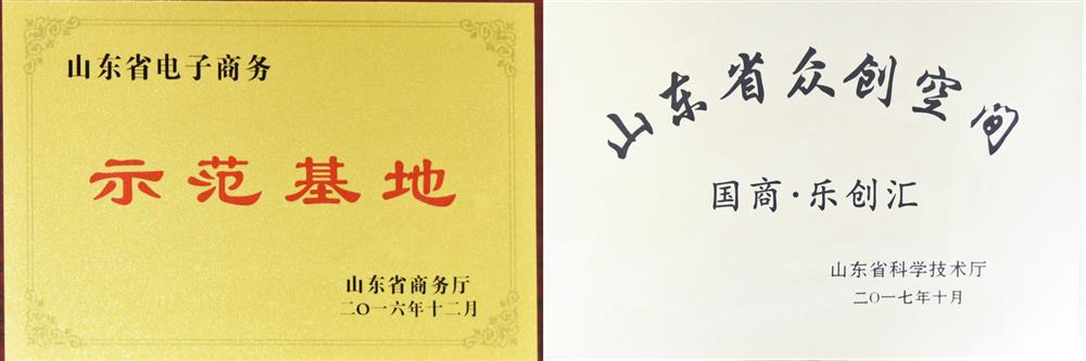 山東省跨境電商行業(yè)優(yōu)質(zhì)服務(wù)商(山東省跨境電子商務(wù)協(xié)會,2017) 2018年度最受歡迎電子商務(wù)服務(wù)機(jī)構(gòu)(山東省電子商務(wù)促進(jìn)會,2018) 電子商務(wù)創(chuàng)新園區(qū)("國際電子商務(wù)服務(wù)產(chǎn)業(yè)博覽會山東省電子商務(wù)促進(jìn)會",2016) 山東省電子商務(wù)示范基地(山東省商務(wù)廳,2016) 山東省眾創(chuàng)空間(山東省科學(xué)技術(shù)廳,2017)