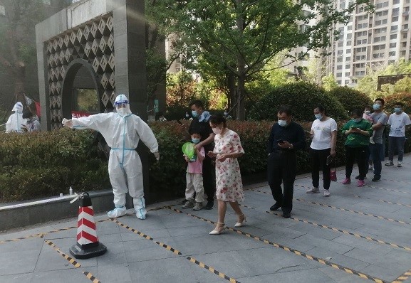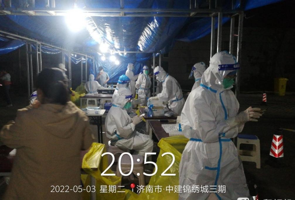 集團支援天橋區(qū)濱河雅居的下沉人員由翟思成帶隊,帶領郭正亮、杜瑞帥、趙士民、楊世興、馮鵬飛等5名志愿者,自4月27日進駐濱河雅居社區(qū)以來,他們聽從社區(qū)安排,進行核酸檢測維持秩序,人員摸排、統(tǒng)計數(shù)據(jù)等工作?!懊刻煜掳喽嫉猛砩?0點半了”, 翟思成說,為保證社區(qū)居民核酸檢測不漏一人,雖然大家的居住地距離濱河雅居都很遠,但還是克服重重困難按時到崗,盡職盡責地完成社區(qū)工作。特別是自4月28日以來,濱河雅居樓棟出現(xiàn)密接和次密接,需要24小時管控,金鐘集團的志愿者白天維持核酸檢測秩序、給管控居民送菜送食品,晚上還要值夜班、進行住戶摸查,條件艱苦、工作勞累,但是志愿者們沒有怨言、只有擔當,他們用實際行動踐行國企責任,使命擔當。