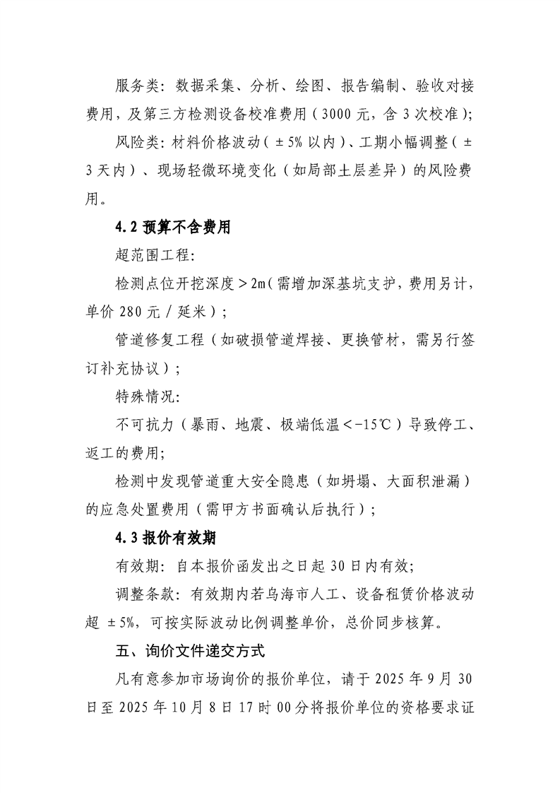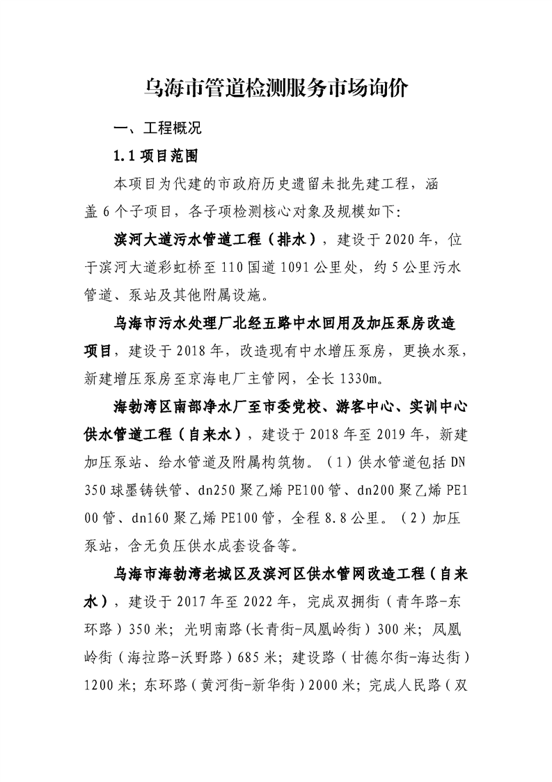 - 2025-10-11烏海市管道檢測服務市場詢價