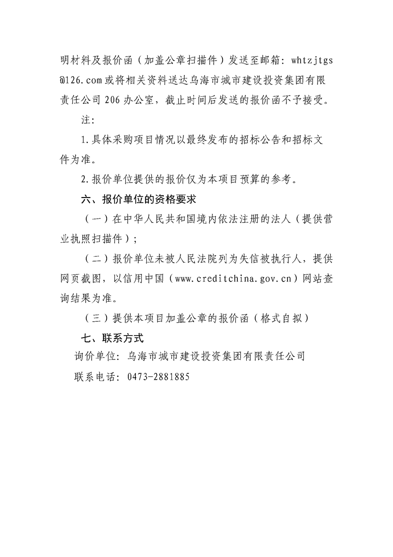 - 2025-07-21烏海市城市建設投資集團有限責任公司五虎山井田南部采空區(qū)災害綜合治理項目公開招聘項目負責人延長報名時間的通知